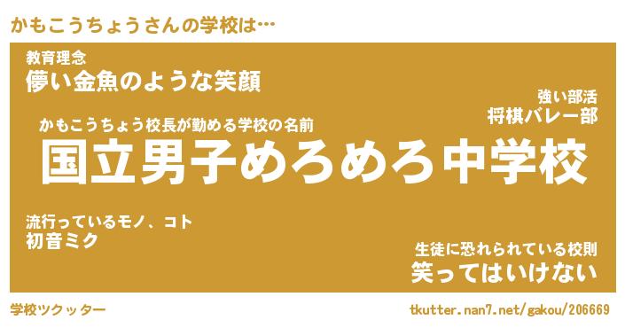 | 男性向けラノベタイトル風あだ名 | 『かもこうちょうの憂鬱』 |