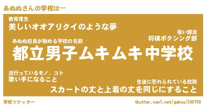 | ヘコむあだ名 | 『あぬにー』『豆乳』『あぬっぺ』 |