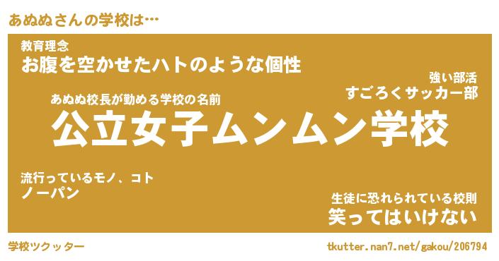 | ファンタジー風あだ名 | 『アヌフェル』『エターナルアヌヌー』 |