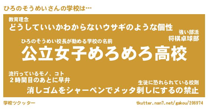 | 伝説のあだ名 | 『封印されしスナイパーひろのそうめい』 |