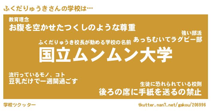 | 男性向けラノベタイトル風あだ名 | 『ふくだりゅうきの憂鬱』 |