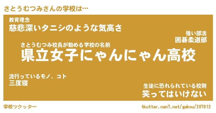 | 男性向けラノベタイトル風あだ名 | 『サトウムツミアートオンライン』 |