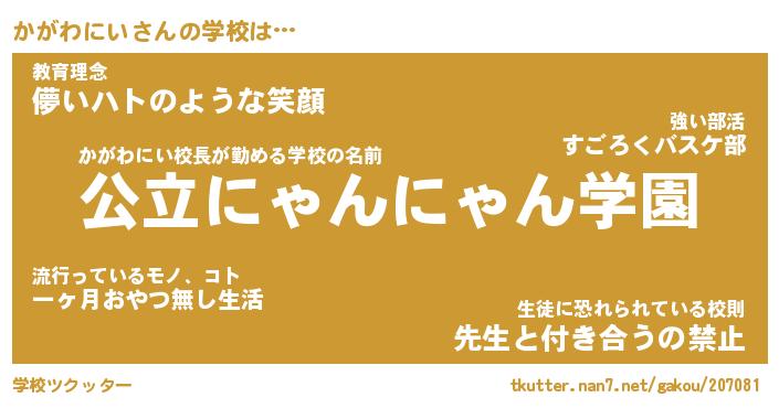 | 胡散臭い通販商品みたいなあだ名 | 『必ず成功する水晶球…その名も「かがわにい」』 |