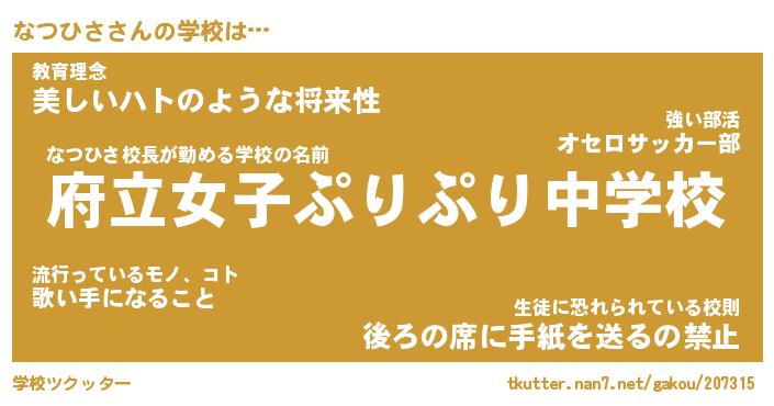 | ヘコむあだ名 | 『なつもー』『つくし』『なつっ子』 |