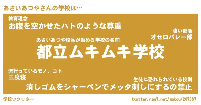 女子向けラノベタイトル風あだ名 | 『(仮)あさいあつやのやんごとなき事情』 |