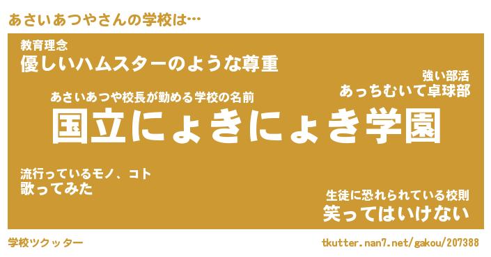 肩書あだ名 | 『あさいあつや店長』『あさいあつや教頭』 |