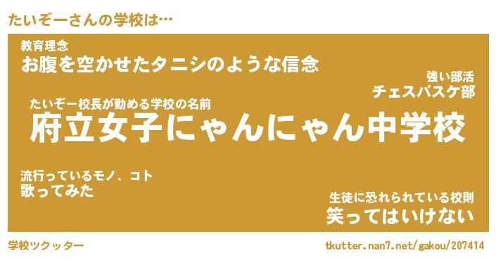 | 意味不明あだ名 | 『ペロリンたいぞー』『永久保存たいぞー』 |