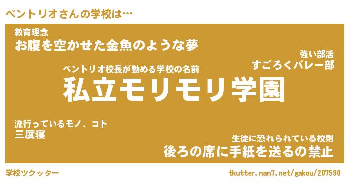 | 男性向けラノベタイトル風あだ名 | 『ベントリオの憂鬱』 |