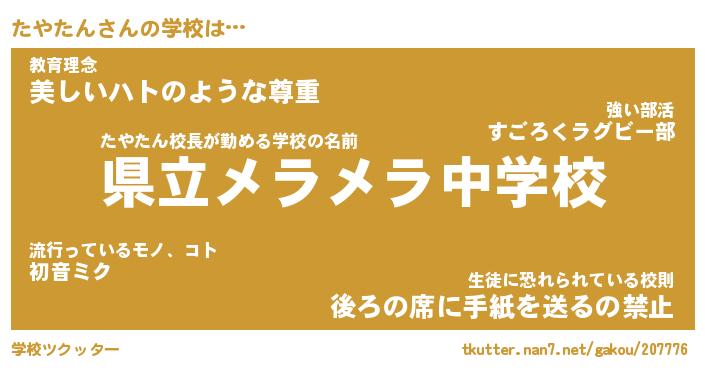 | ファンタジー風あだ名 | 『タヤフェル』『エターナルタヤタンー』 |
