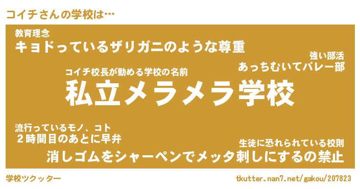 | ヒーロー風カッコイイあだ名 | 『スーパーコイチ』『ウルトラコイチマン』 |