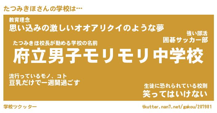| 男性向けラノベタイトル風あだ名 | 『タツミキホアートオンライン』 |