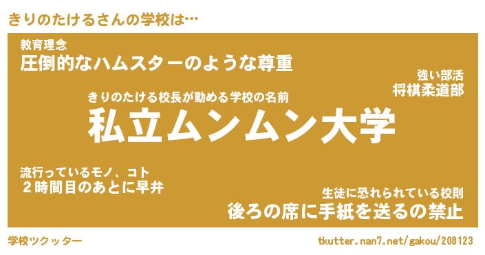 | 男性向けラノベタイトル風あだ名 | 『きりのたけるの憂鬱』 |