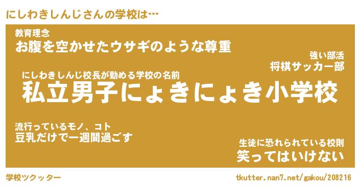 | ポケモン風あだ名 | 『ニシチュウ』『ニシワダネ』 |