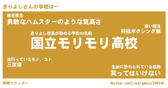 | ヘコむあだ名 | 『きりふぇ~』『なまこ酢』『きりを』 |