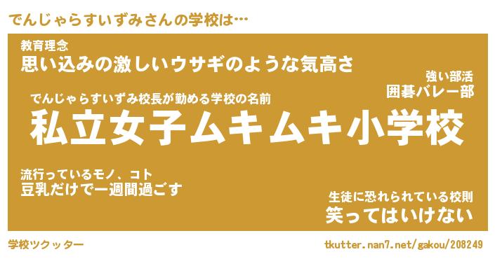 | 先生 | でんじゃらすいずみ先生が勤める学校名『府立猫耳中学校』 |