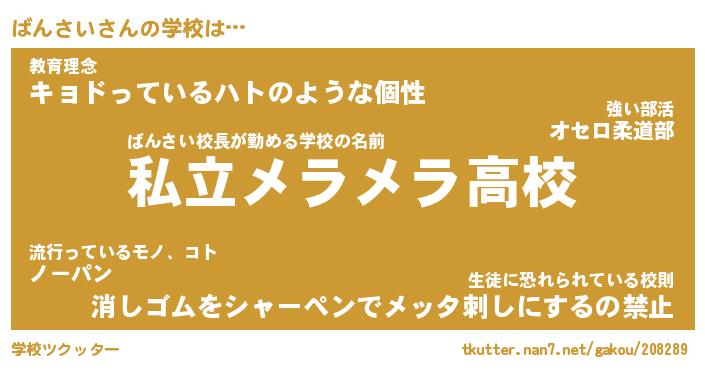 | 意味不明あだ名 | 『ペロリンばんさい』『永久保存ばんさい』 |