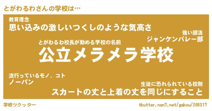 | 胡散臭い通販商品みたいなあだ名 | 『必ず成功するブレスレット…その名も「とがわるわ」』 |