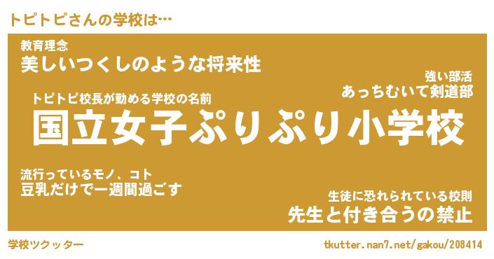 | ピコ太郎風あだ名 | 『トコ六郎』『ピト一郎』『トピ四郎』 |