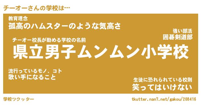 | ヒーロー風カッコイイあだ名 | 『スーパーチーオー』『暗黒騎士チー』 |