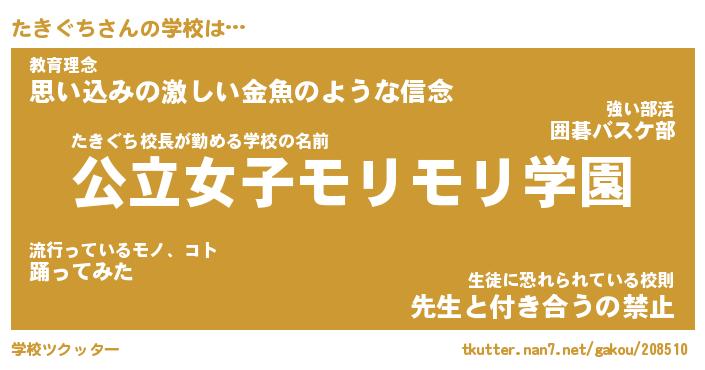 | 意味不明あだ名 | 『ペロリンたきぐち』『永久保存たきぐち』 |
