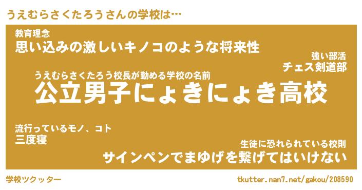 | 女子向けラノベタイトル風あだ名 | 『うえむらさくたろう姫と円卓の騎士』 |