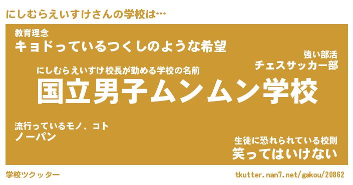 | ポケモン風あだ名 | 『ニシチュウ』『ニシムダネ』 |