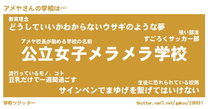 | ファンタジー風あだ名 | 『アメフェル』『エターナルアメヤー』 |