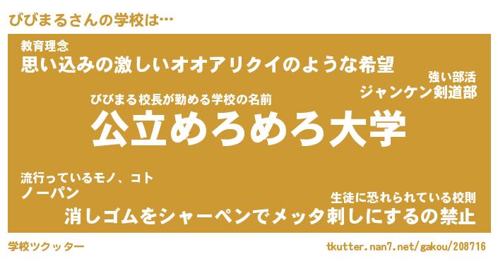 | 男性向けラノベタイトル風あだ名 | 『びびまるの憂鬱』 |