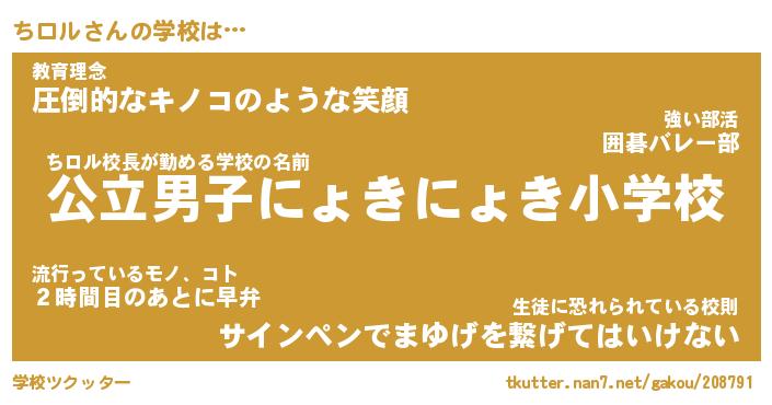 | ヒーロー風カッコイイあだ名 | 『スーパーチロル』『ウルトラちロルマン』 |