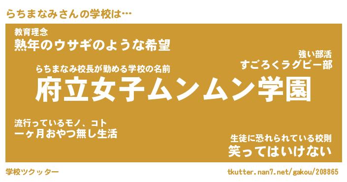 | 肩書あだ名 | 『らちまなみ店長』『らちまなみ大統領』 |