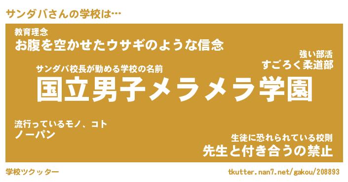 | 意味不明あだ名 | 『ペロリンサンダバ』『永久保存サンダバ』 |