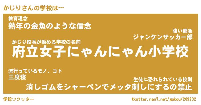 | ピコ太郎風あだ名 | 『カコ四郎』『ピカ次郎』『カジ八郎』 |