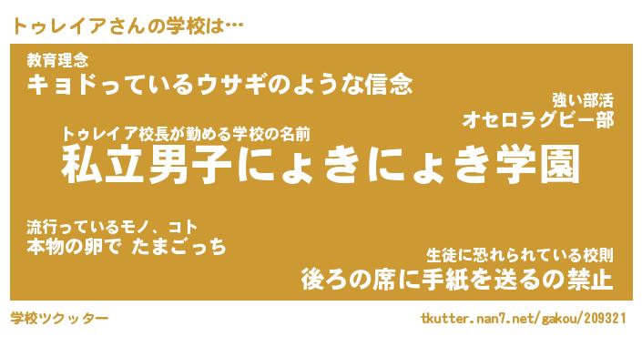 | 男性向けラノベタイトル風あだ名 | 『トゥレイアの憂鬱』 |