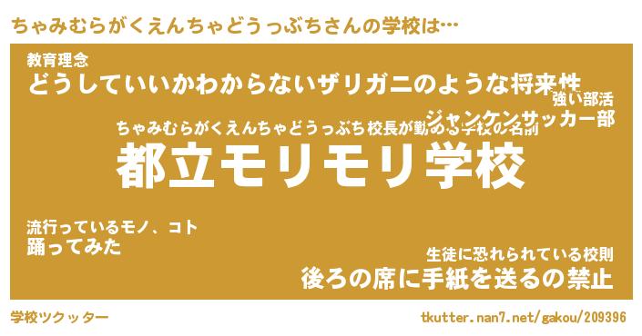 | 男性向けラノベタイトル風あだ名 | 『ちゃみむらがくえんちゃどうっぶちの憂鬱』 |