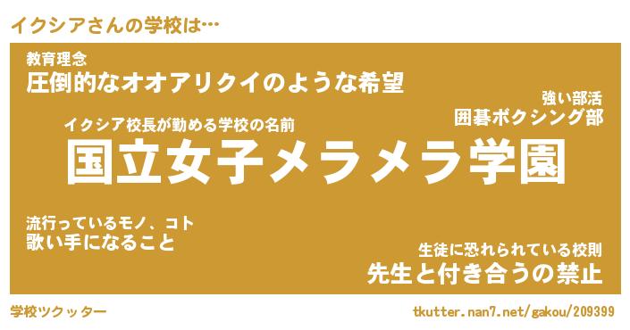 | 意味不明あだ名 | 『ペロリンイクシア』『永久保存イクシア』 |
