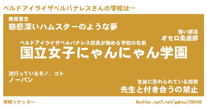 | 意味不明あだ名 | 『ペロリンベルドアイライザベルバナレス』 |