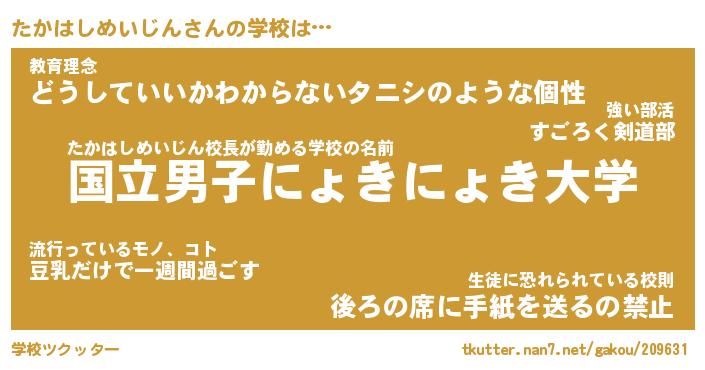 | 男性向けラノベタイトル風あだ名 | 『たかはしめいじんの憂鬱』 |