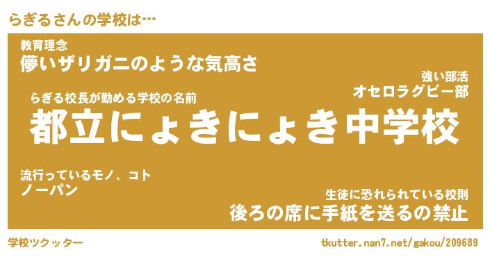 | 意味不明あだ名 | 『ペロリンらぎる』『らぎるフォーエバー』 |