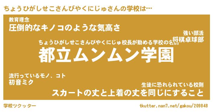 | 男性向けラノベタイトル風あだ名 | 『ちょうひがしせこさんびやくにじゅの憂鬱』 |