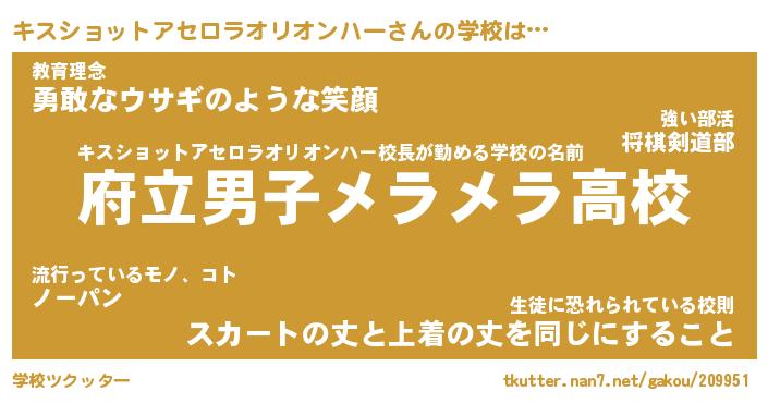 | 女子向けラノベタイトル風あだ名 | 『キスショットアセロラオリオンハー姫と円卓の騎士』 |