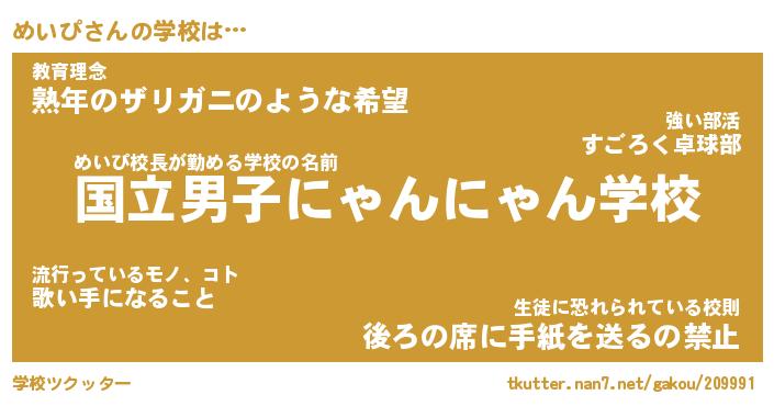 | 男性向けラノベタイトル風あだ名 | 『めいぴの憂鬱』 |