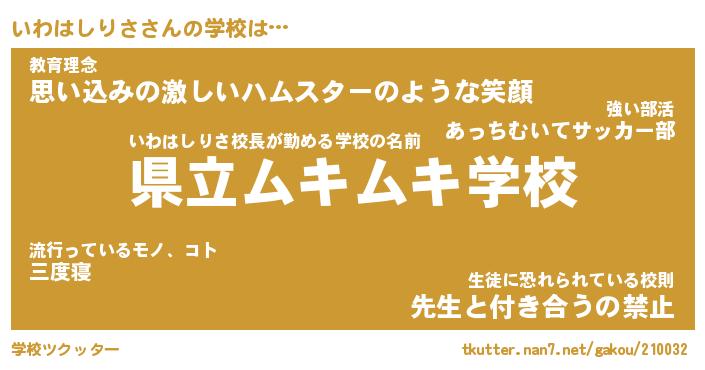 | ヒーロー風カッコイイあだ名 | 『スーパーイワハシリサ』『天弓騎士イワ』 |
