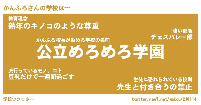 | 意味不明あだ名 | 『ペロリンかんふろ』『永久保存かんふろ』 |
