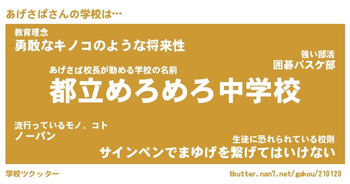 | ファンタジー風あだ名 | 『アゲフェル』『エターナルアゲサバー』 |