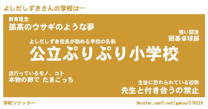 | 女子向けラノベタイトル風あだ名 | 『(仮)よしだしずきのやんごとなき事情』 |