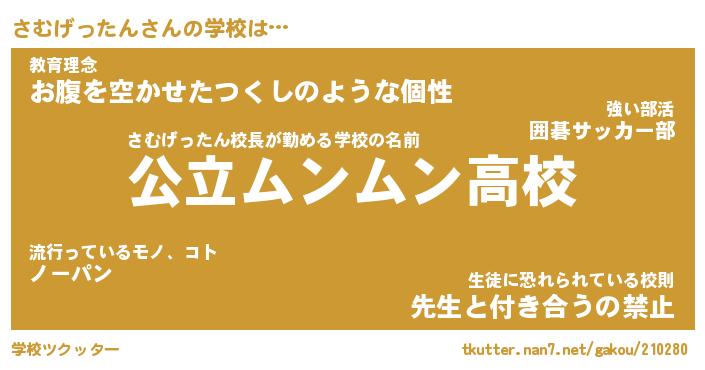 | 男性向けラノベタイトル風あだ名 | 『さむげったんの憂鬱』 |