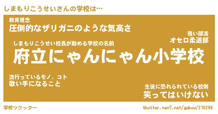 | 男性向けラノベタイトル風あだ名 | 『しまもりこうせいの憂鬱』 |