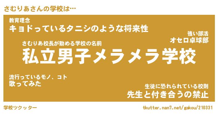 | 男性向けラノベタイトル風あだ名 | 『さむりあの憂鬱』 |