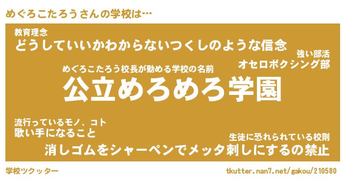 | 男性向けラノベタイトル風あだ名 | 『めぐろこたろうの憂鬱』 |