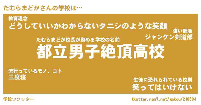 | ヒーロー風カッコイイあだ名 | 『スーパータムラマドカ』『天弓騎士タム』 |